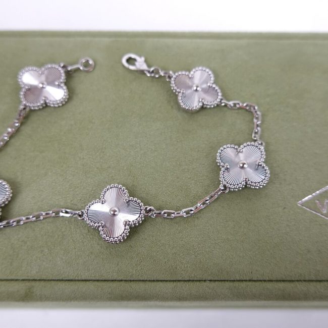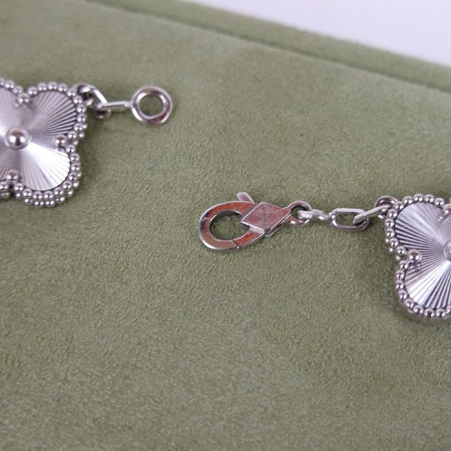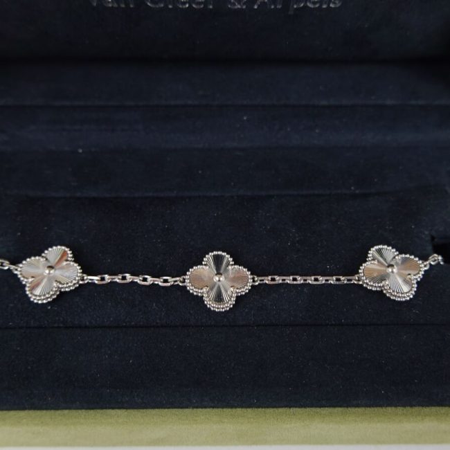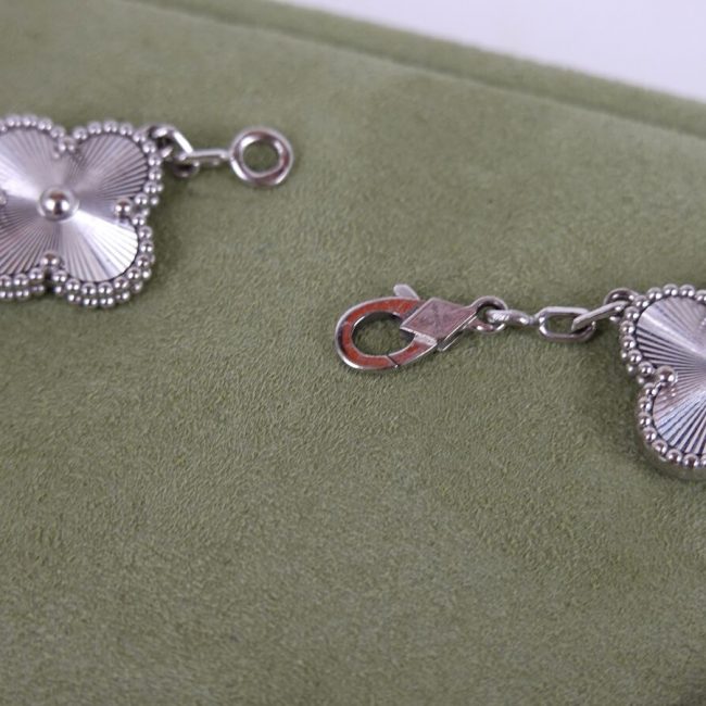 Bracelet Van Cleef & Arpels Vintage Alhambra 5 Motifs Or Blanc Guilloché