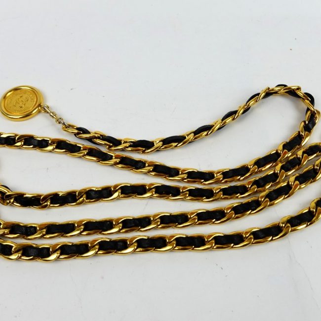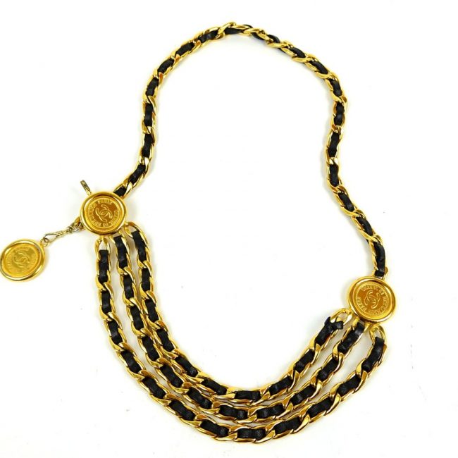 Ceinture Chanel en Cuir de Veau Noir et Métal Doré