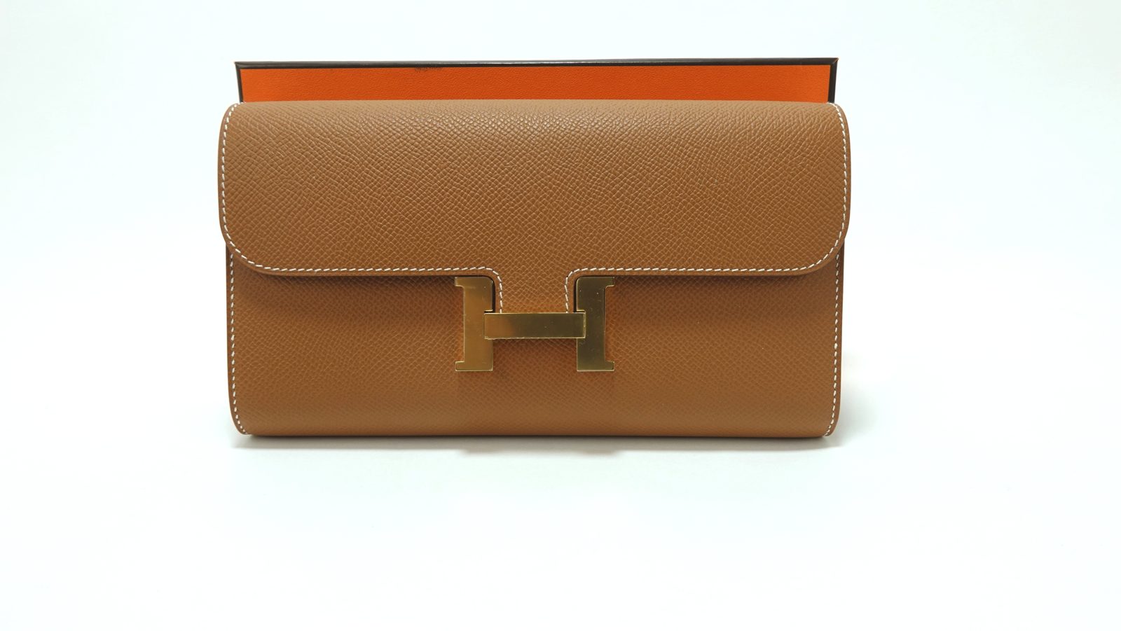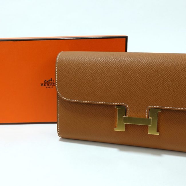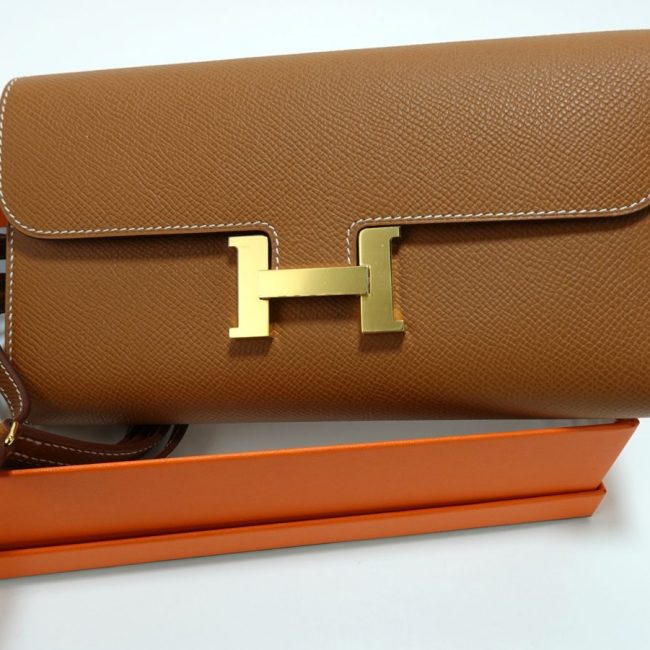 Pochette Hermès Constance To Go en veau Epsom coloris Gold, élégant et iconique.