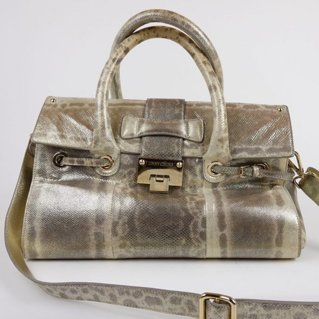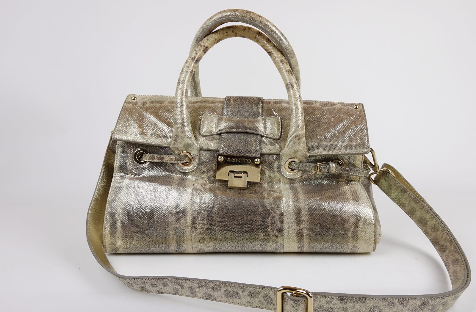 Sac à Main Jimmy Choo Rosalie avec double anse et bandoulière visible sur les photos.