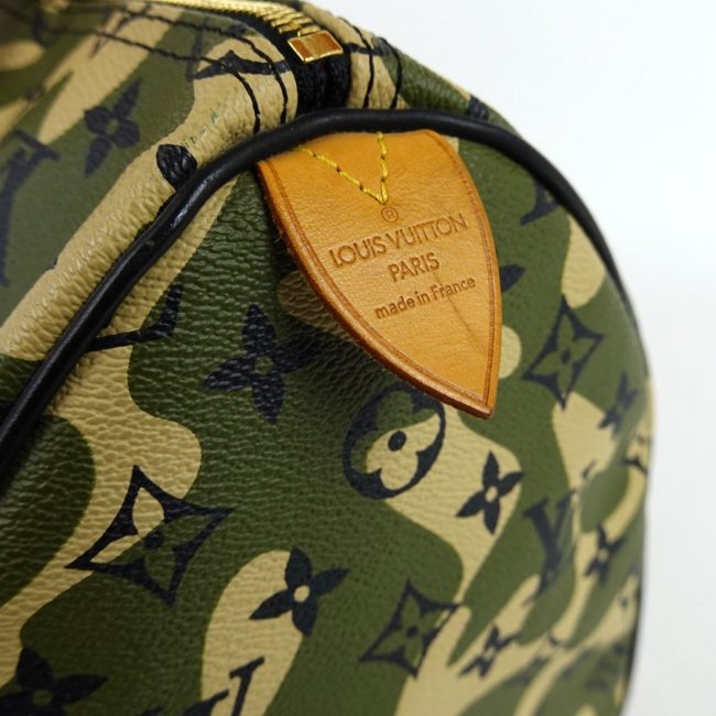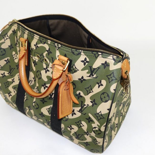 Édition limitée emblématique, le Speedy 35 Monogramouflage associe la toile LV emblématique au motif camouflage revisité par l’artiste Takashi Murakami.